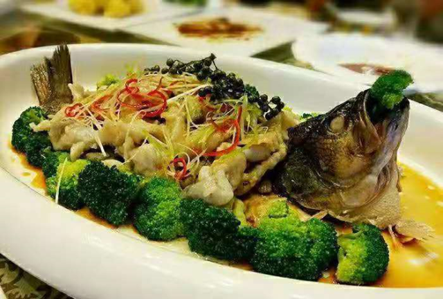 烹制出来的鲈鱼鲜辣味美、入口即化